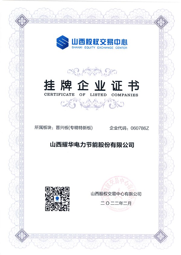 山西耀華電力節(jié)能股份有限公司是國內第一家提出谷期電集中儲能蓄能的高新技術企業(yè),其主營業(yè)務:電力市場購售電交易運營、電力設施安裝檢測運維、 低谷電采暖設備的研發(fā)、生產(chǎn)、安裝、銷售及運行服務于一體。公司成立于1996年,落座于山西省太原市,現(xiàn)有股權代碼在晉興板上市的專精特新企業(yè),中國建設科技自主創(chuàng)新優(yōu)勢企業(yè),山西省節(jié)能協(xié)會理事單位,擁有自主知識產(chǎn)權,獲得國家多項專利,參編了電采暖國家標準(JC/T60008-2021)和主編了山西省地方標準(DBJ04/T291-2012)。擁有國家發(fā)明專利11項,軟件著作權6項。其中“大數(shù)據(jù)遠程集中監(jiān)控運維服務平臺”早在2019年就在河北、天津、山西等多個煤改電地區(qū)投入試用,節(jié)能效果非常顯著,運維方便快捷,用戶滿意。